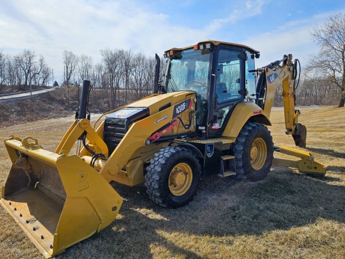 2019 CAT 430F2 Backhoe with 4,400 hrs, cab with heat/AC/radio, joystick controls, ride control, 4-n-1 bucket, extendahoe, rear hydraulics and coupler. Clean one-owner machine.